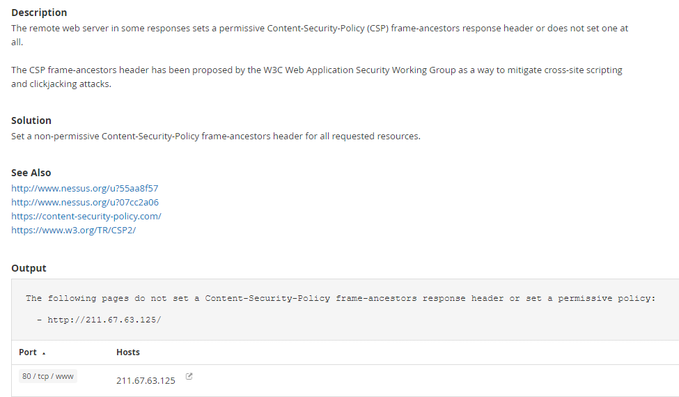 用来确认是否浏览器可以在frame或iframe标签中渲染一个页面,网站可以用这个头来保证他们的内容不会被嵌入到其它网站中,以来避免点击劫持。